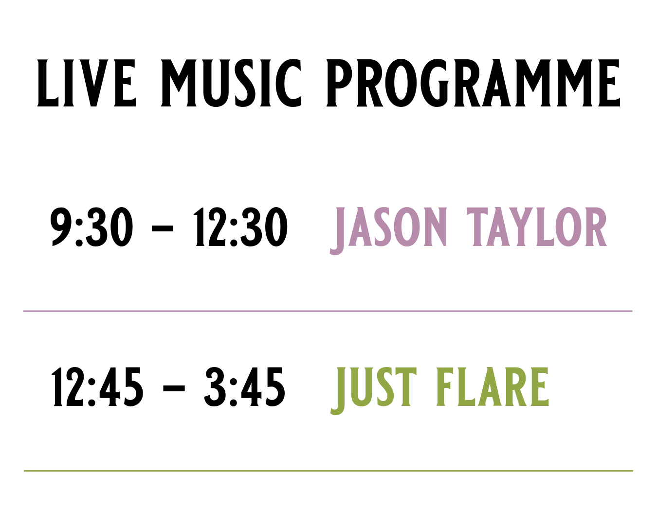 From 12:45pm to 3:45pm, Launceston duo Just Flare (Hannah & Zac) take over, bringing warm harmonies and laid-back covers that carry beautifully across the site!